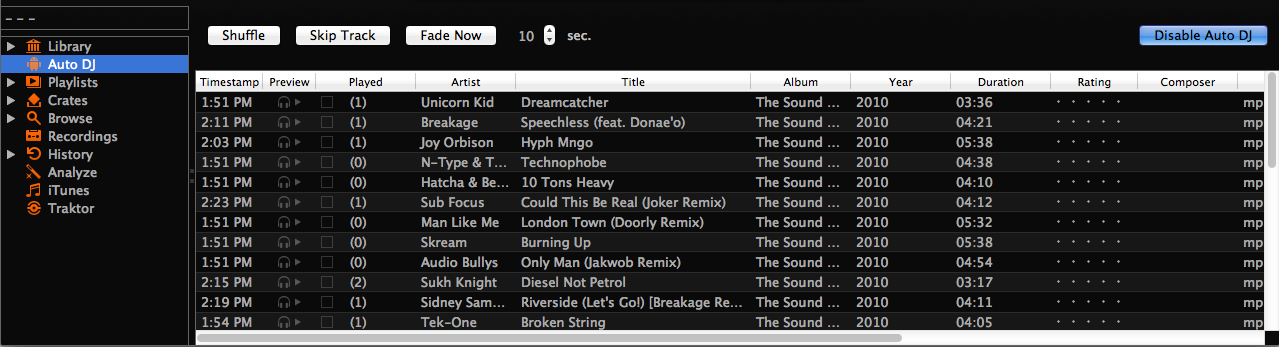 If you did not set any crates as an Auto DJ track source, tracks are selected from the whole library instead.