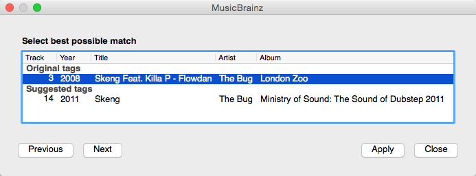 Tracks are automatically sorted by the active column. Click on the active column header to reverse the sort order. Click on another column header to change the active column.