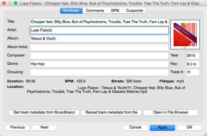 Text filtering: album_artist, album, artist, comment, composer, crate, genre, grouping, location, title