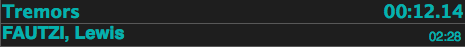 The title of the track that was loaded into a deck is displayed on top. This is the same as the title listed under the Title column heading in the Mixxx library. This information is initially loaded from the track’s metadata. If the metadata is missing, the title and artist are guessed from the filename.
