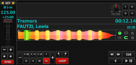 Clicking this button ejects the track from the deck. Alternatively you can use a keyboard shortcut, go to the chapter Using a Keyboard for more information.