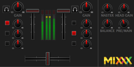 This knob controls the gain applied to the headphone output signal that Mixxx sends to your sound card. Generally, this knob should not be adjusted. To adjust the volume in your headphones, adjust your sound card’s gain on the headphone output. Most external sound cards have a gain knob specifically for the headphone jack. If you use an onboard sound card for your headphones, adjust the gain control in your OS mixer program. If your sound card only has one gain knob that controls both the main output and the headphone output, then adjust the Head Gain knob in Mixxx to control the volume of your headphones without affecting your main output.