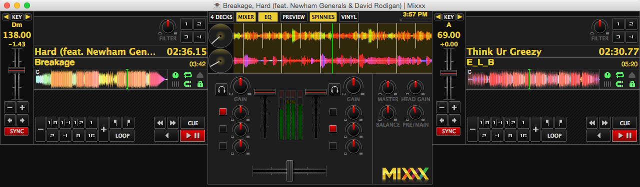 • It is basically the same as Mixxx mode but the buttons are more flashy like a Pioneer CDJ player.